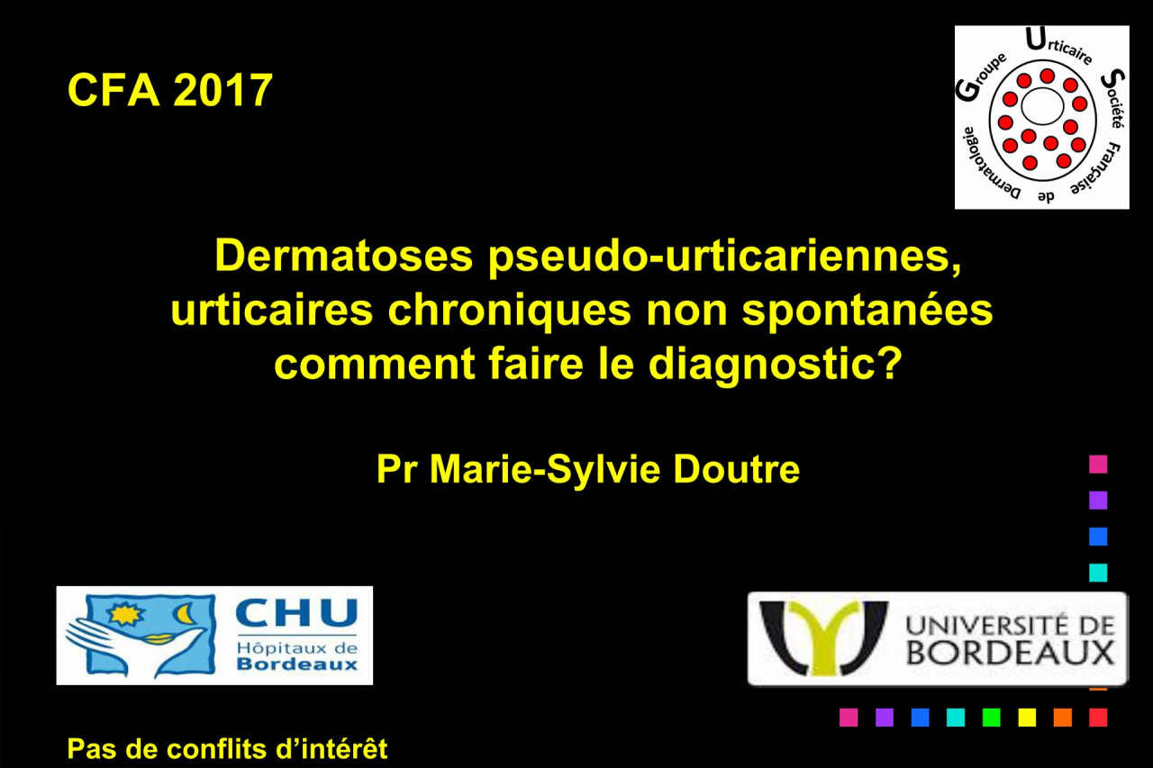 11h00 • Dermatoses pseudo-urticariennes, urticaires chroniques non spontanées : comment faire le diagnostic ? > Marie-Sylvie DOUTRE (Bordeaux)